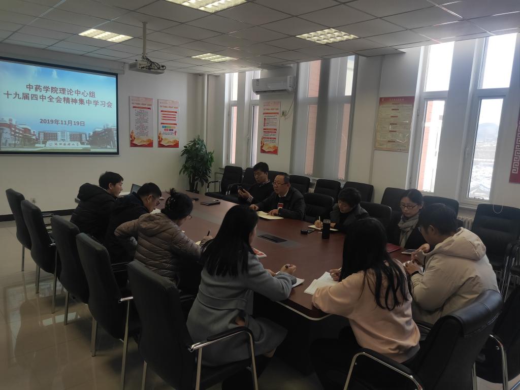2019年11月19日,公司党委理论学习中心组在中药楼C502会议室举行十九届四中全会精神学习研讨会。会议由公司党委书记张伟主持,公司领导班子成员、各党支部书记、辅导员参加了学习研讨会。