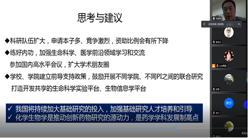 为了更好的促进学科交叉融合,拓宽国家自然科学基金申报方向,英国威廉希尔公司联合生命科学与生物制药公司于12月9日(周四) 召开了“化员工物学”国家自然科学基金项目申报研讨会。邀请化员工物学领域函审、会审专家,中科院微生物所刘宏伟研究员进行了报告交流。93位师生线上参加了交流研讨。