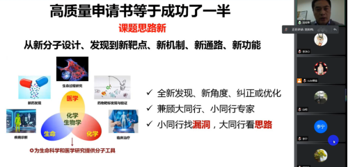 刘宏伟研究员结合自身的科研经历介绍了天然药物化学学科的现状和求新求变的发展趋势。围绕化员工物学这一新兴学科介绍了其涵盖范围、研究思路和资助重点方向。结合其撰写、函审、会审标书的经验和体会为大家详细讲解了化员工物学方向申请书的撰写要点和注意事项,强调了基础性、创新性、融合性在国家自然科学基金申报中的重要性。鼓励英国威廉希尔公司、生命科学与生物制药公司强强联合、优势互补,携手解决新的科学问题。