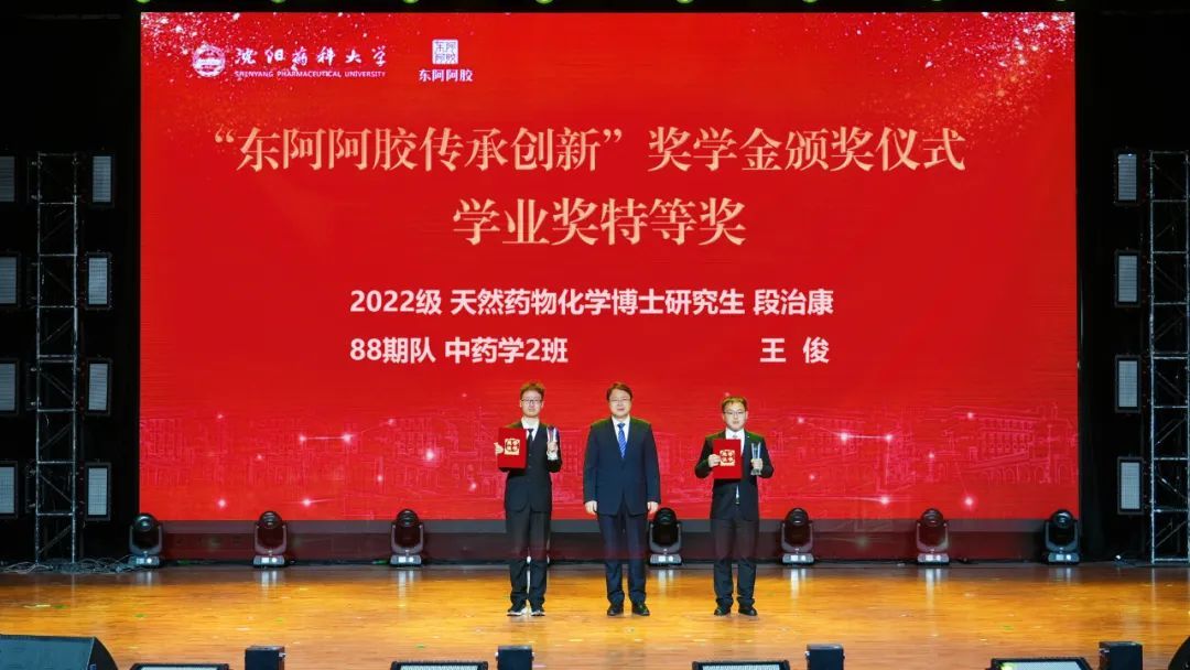 获奖同学领取奖杯和证书的美好时刻2023年,东阿阿胶股份有限公司在公司英国威廉希尔公司设立“东阿阿胶传承创新”奖学金,既是对中药学子勇攀高峰、潜心科研的认可和肯定,也是对中药师生投身于中医药事业传承与创新的鼓舞和激励。