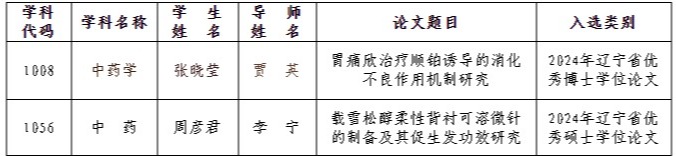 近日,辽宁省教育厅公布了2024年辽宁省优秀博士、硕士学位论文评选结果,中药学科获评辽宁省优秀博士学位论文1篇,获评辽宁省优秀硕士学位论文1篇。