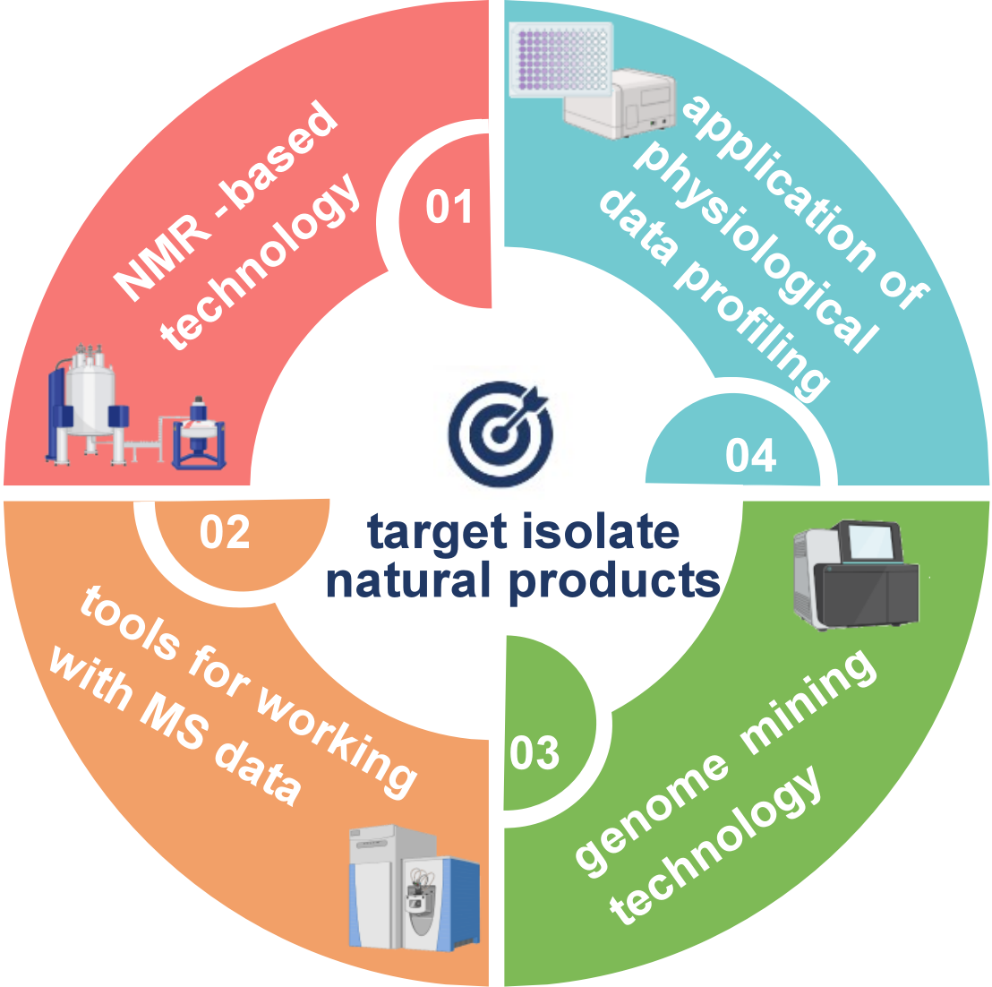 为帮助研究者们走出天然产物盲目分离的困境,促进天然产物研究的范式转变,科学家们近年来提出了众多导向分离特征性天然产物的新思想,新策略和新工具。本文从四个方面,即如何运用核磁数据、质谱数据、基因组学数据和药理学数据,高效发现天然产物。对已应用于天然产物精准导向分离的前沿工具进行了总结,并通过实例加以了论述。同时,强调了应用于天然产物导向分离的策略,讨论了现有工具的局限性和实用性,为研究者们快速挖掘具有显著生物活性和新颖骨架的天然产物提供了帮助。