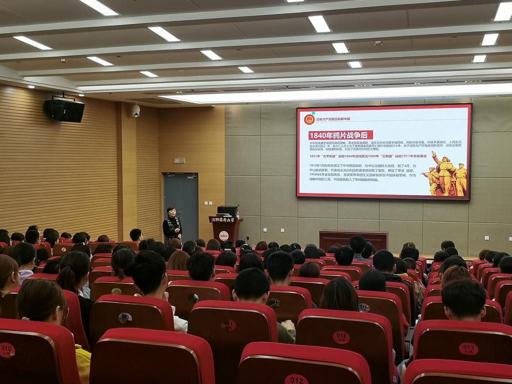 王双艳副书记以“从党史教育看当代青年之使命与担当”为题,从习近平总书记对当代青年的殷切希望谈起,以中国共产党建党100周年的重大事件为主线,尤其是详细解读了五四运动中青年人为中华民族的觉醒与复兴上下求索、舍生取义、前仆后继的历史瞬间,她用一个个党史故事生动的复原了那个时代青年的热血与追求、使命与担当。王双艳循循善诱的阐述让同学们真正理解了“没有共产党就没有新中国”,只有中国共产党才能带领中华民族从沧桑屈辱走向伟大复兴的辉煌之路。王双艳讲述的中国外交天团在近期国际交往与博弈中的硬气与底气,更让同学们深刻体会到从“弱国无外交”到“中国人民不答应”的感动与震撼。