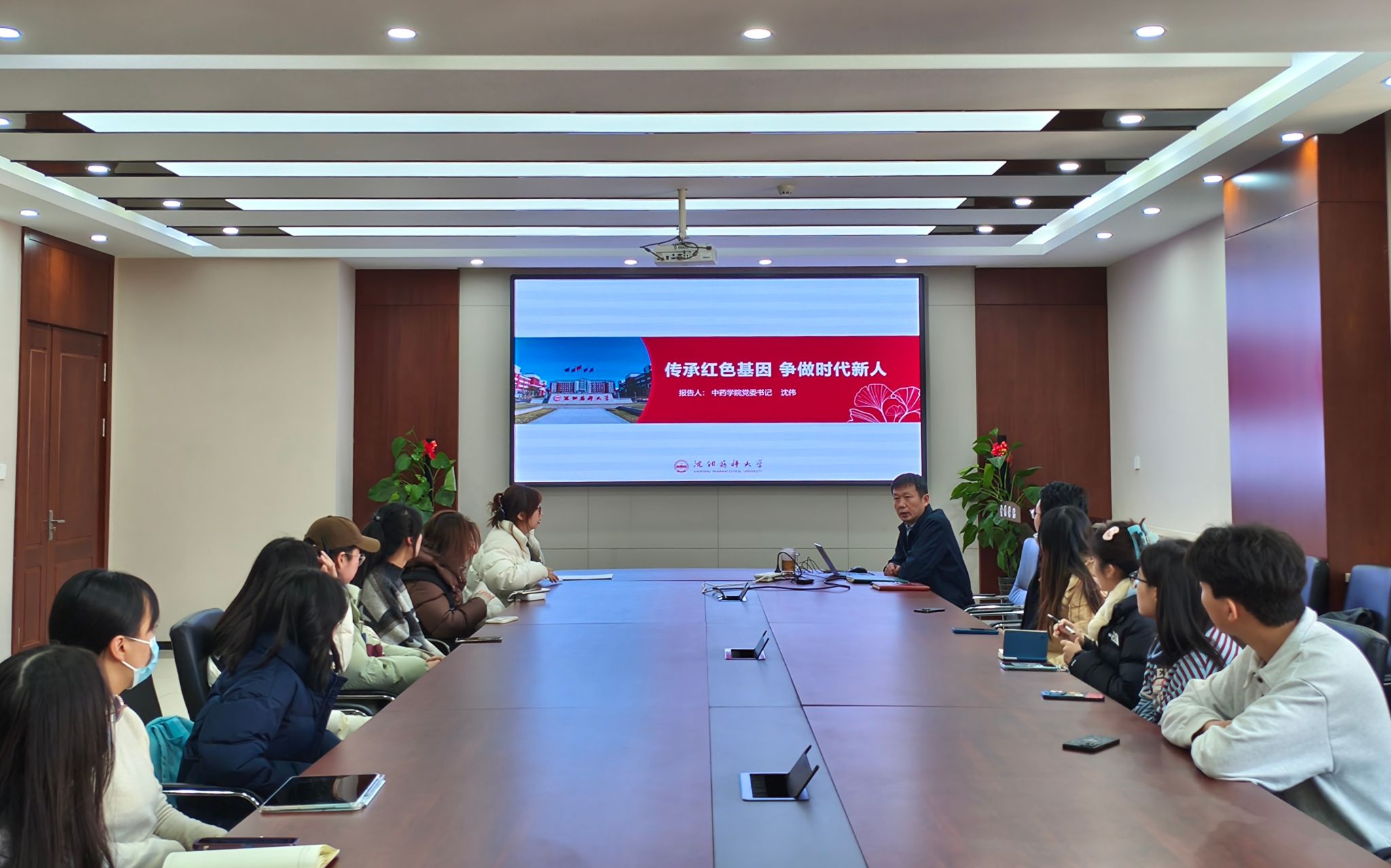 沈伟首先宣讲解读了党的二十大报告,然后从什么是红色基因、为什么要传承红色基因、怎么样才能传承红色基因和做新时代的中医药传承者等四个方面做了阐述。他带领同学们首先回顾了我党百余年的奋斗历史,指出了共产党人的初心和使命就是为中国人民谋幸福,为中华民族谋复兴。他指出,当代老员工在认真学习“四史”的同时,要结合沈药的红色校史学习,做红色基因的坚定传承者。最后,沈伟希望同学们学习贯彻好党的二十大精神,厚植家国情怀,涵养进取品格,助力中医药传承创新发展,为推进中国式现代化作出中药人的贡献。