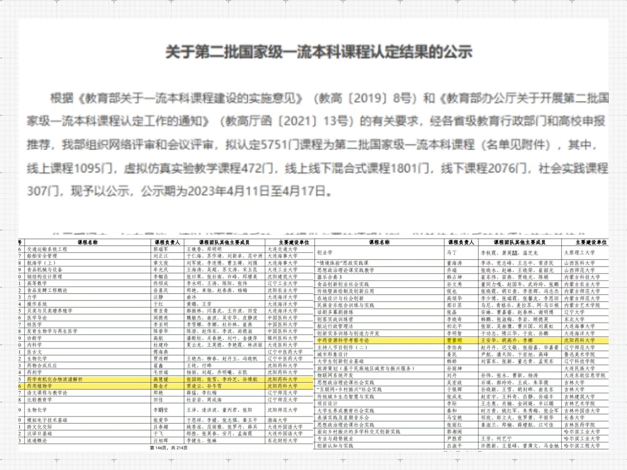 4.课程建设成果突出,入选国家级一流本科课程3门,入选全国药学专业学位研究生精品课程1门,全国药学专业学位研究生在线示范课程1门,入选第六届全国药学专业学位优秀教学案例1项。
