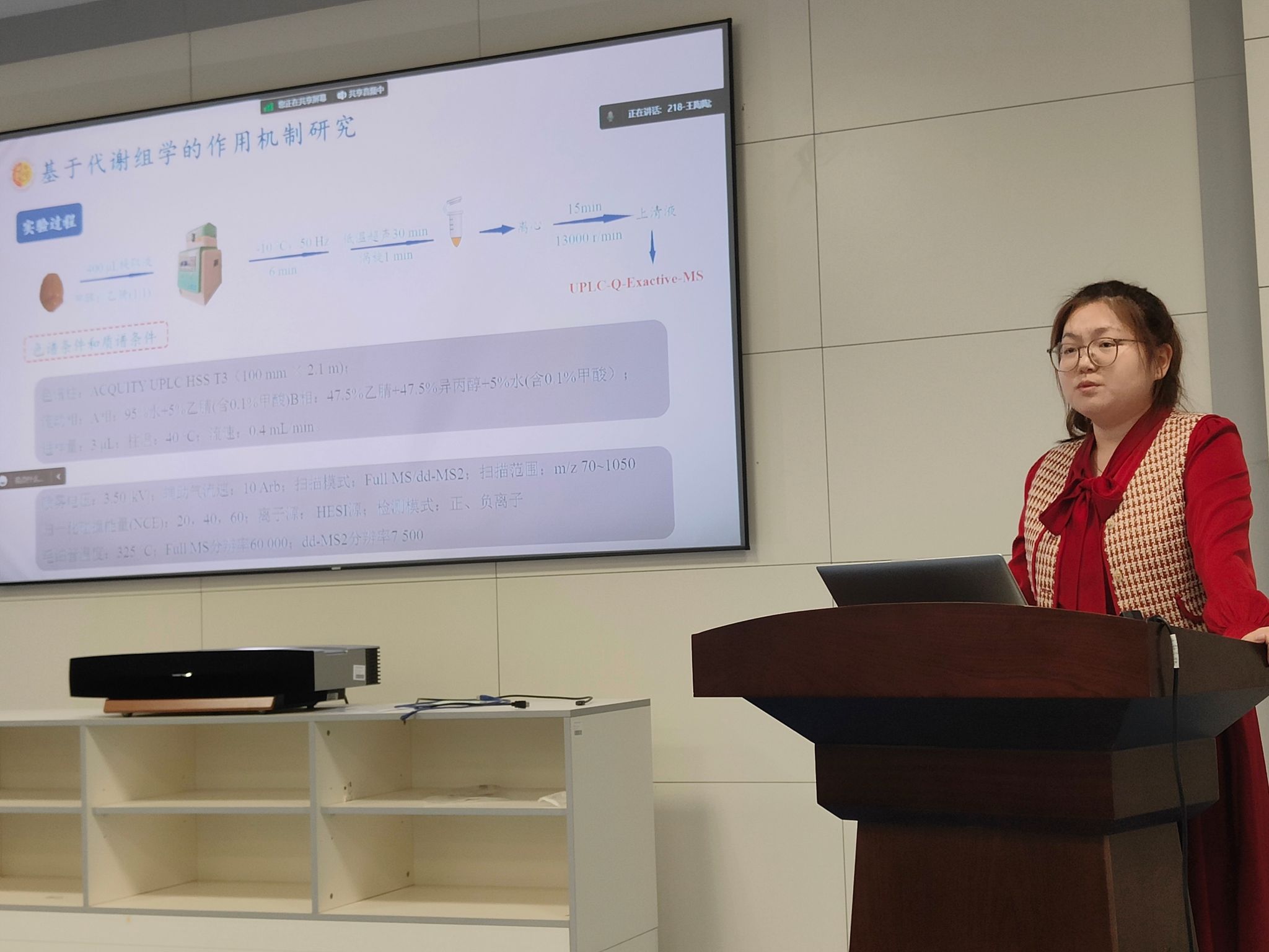 最后,王陶陶和徐夏菁两名博士研究生与参会老师、同学进行了关于中药药效物质与作用机制研究的经验、方法和思路的交流。此次学术报告不仅仅是思想的碰撞与融合,也开阔了研究生科研视野,促进了研究生自主开展学术交流活动,营造敢于探索、勇于创新的学术氛围,为未来的药学研究提供更多的思路和方向。