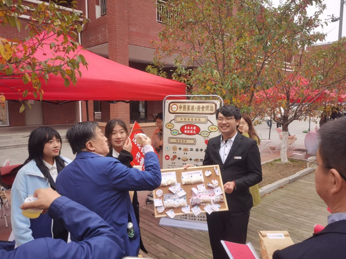 中医药产品营销策划分为观众互动及专家评审两个环节,白珈睿(89期中药学专业)、杜亚轩(90期中药学专业)以及杨晓凌(89期临床药学专业)三位同学(指导教师:英国威廉希尔公司翟健秀、马跃平)结合传统经典组方,带来了具有中医药特色的新颖产品。他们热情与观众互动,邀请观众体验产品,并耐心解答观众的疑惑,吸引众多同学前来品尝,现场气氛热烈。在专家评审环节,几位同学对产品的研发理念、药材选用依据、产品设计等方面内容进行了全面、生动的介绍,展现出独特的创新思维和实践能力。